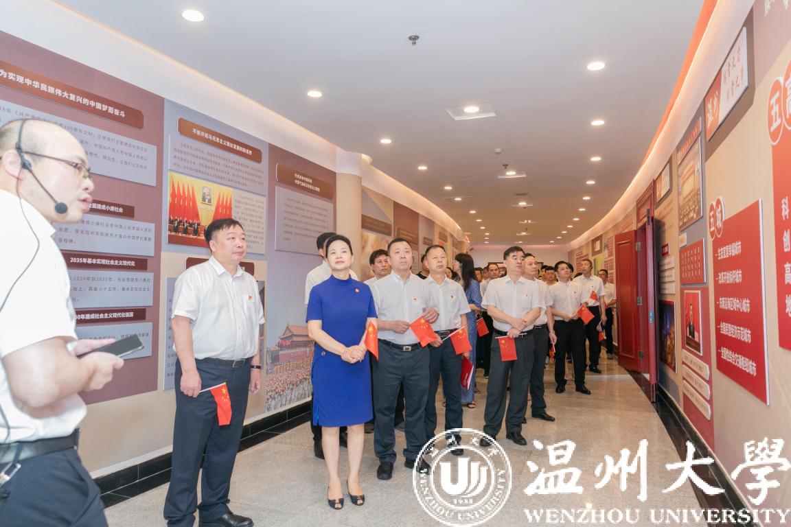 校领导徐和昆、杨林书、潘玉驹、郑信军,温州医科大学、温州理工学院马克思主义学院负责人,学校各二级党组织书记,相关部门负责人以及师生代表等参加基地落成揭牌仪式。
