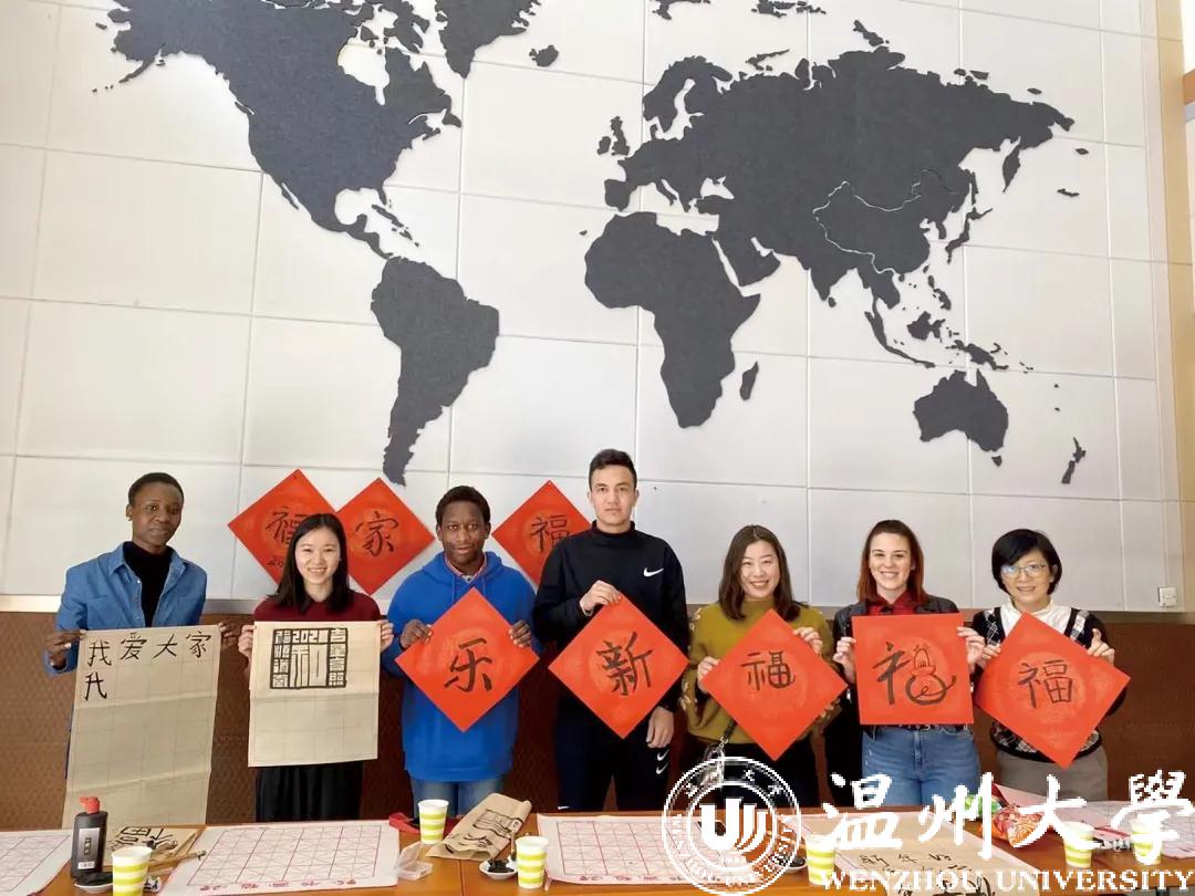 农历牛年前夕,“写‘福’字、贴春联、挂灯笼”,迎接传统节日的喜庆气氛弥漫在LY体育·(国际)官方网站国际教育学院,来自越南的2020级汉硕留学生代表陈氏玉映与尼日利亚、津巴布韦、土库曼斯坦、意大利等国的留学生,跟着温大的老师们一同体验中国年味、感知中国文化,感受浓浓的“温”情年味。