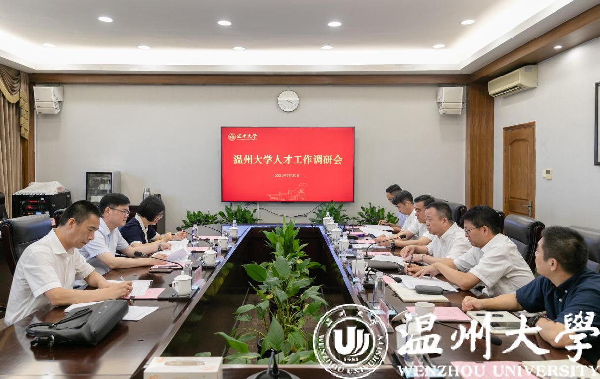 7月20日下午,温州市人民政府副市长陈应许莅临我校调研指导人才工作。市人力社保局副局长胡正长、市委组织部人才工作处副处长王昕等陪同调研。校党委书记谢树华、党委副书记庄兴忠、副校长薛伟,以及党校办、组织部、人事处、招就处等部门负责人参加调研汇报会。
