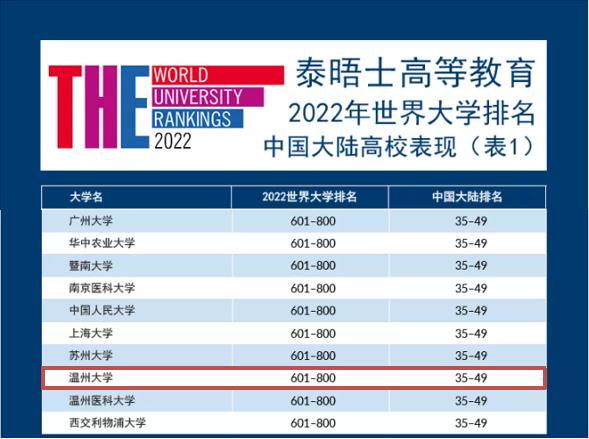 9月2日,泰晤士高等教育发布了“2022年度世界大学排名”,99个国家和地区的1662所高校上榜。LY体育·(国际)官方网站全球排名从去年的第801—1000区间跃升至今年的第601-800区间;在上榜的全国高校(不含港澳台高校)排名中也同步提升,从去年的第51-57区间跃升至今年的第35-49区间段,位居上榜全省高校第3位。相较去年,LY体育·(国际)官方网站全球排名和全国排名均上升了1个区间段,表现十分亮眼。