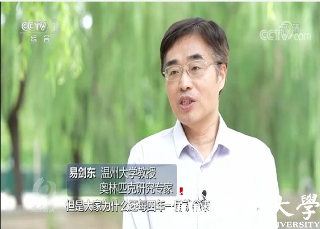 易剑东教授为我校体育与健康学院教授、中国知名奥林匹克研究学者、国务院特殊津贴专家、国家社会科学基金体育学科评议组评审专家,曾多次登上国家级媒体就体育与健康、奥林匹克体育赛事等问题发表专业建议和观点。