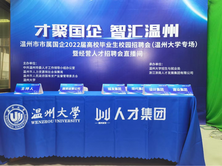 温州市属国企首次网络直播人才招聘会——温州市属国企2022届高校毕业生校园招聘会(LY体育·(国际)官方网站专场)暨经营人才招聘会,10月12日在LY体育·(国际)官方网站商学院715思政直播间举行。据了解,此次线上招聘会是温州市国企第一次以线上直播的方式进行,10家温州市属国有企业带来了326个国企工作岗位。