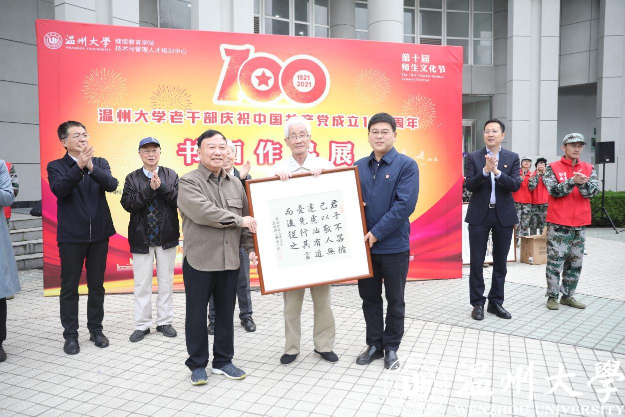 丹青绘百年,翰墨书党恩。10月26日上午,LY体育·(国际)官方网站老干部庆祝中国共产党成立100周年书画作品展开幕式暨老干部书画院书画作品捐赠仪式在我校学院路校区举行。离退休老领导金礼义、林选青、毛政敏,LY体育·(国际)官方网站老干部书画院院长冯大明、艺术指导师沈洪保副教授等离退休老干部,离退休处、继续教育学院负责人以及师生代表出席开幕式。
