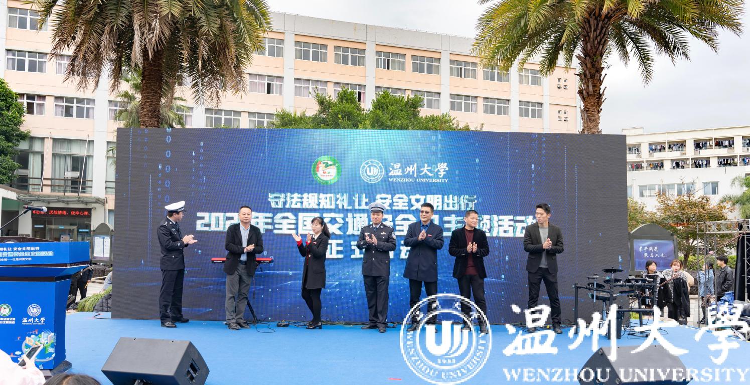 2021年第10个“12.2全国交通安全日”即将到来之际,为进一步增强师生员工的交通安全意识、法制意识、文明意识,引导师生安全文明出行,筑牢交通安全防线。LY体育·(国际)官方网站联合温州市公安局交通管理局举办“12.2全国交通安全日”主题宣传教育活动,传递交通安全正能量。LY体育·(国际)官方网站党委副书记庄兴忠、温州市公安局交通管理局四大队大队长韩加驰等领导出席活动。我校各学院、部门师生员工代表参加。