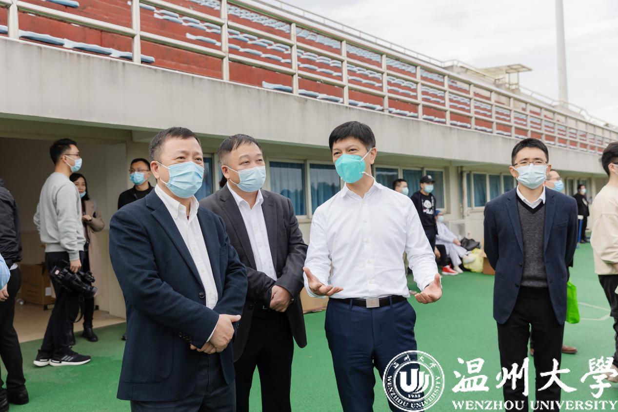 学校新冠肺炎疫情防控工作领导小组组长谢树华、赵敏,副组长庄兴忠、蔡曙光等现场指挥,瓯海区委书记曾瑞华,区委常委、副区长林照光,市卫健委副主任朱国晓、市教育局党委副书记白炳兴等领导莅临演练现场指导。学校新冠肺炎疫情防控工作各专项工作组、各学院师生参与实战演练。