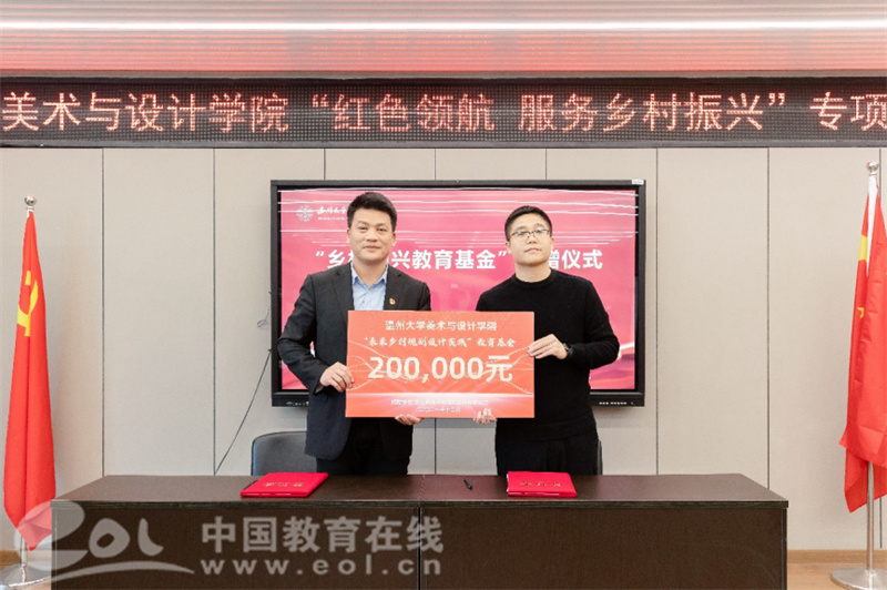 此次“红色领航 服务乡村振兴”行动,得到社会各界的大力支持,美院优秀校友、浙江映筑环境规划设计有限公司总经理颜士洲先生无偿捐赠20万元,成立“LY体育·(国际)官方网站美术与设计学院乡村振兴教育基金”,用于专项资助和奖励学院乡村振兴实践项目及服务乡村振兴领域做出贡献的优秀教师与学生。