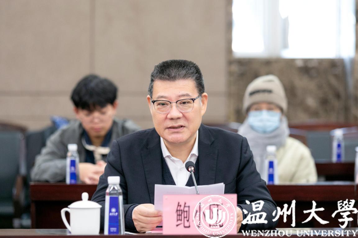 鲍小瓯讲话。他高度肯定本次产学研基地合作对于双方而言都是极佳的发展机遇,政府搭台、校企合作、共赢未来。他提出三点希望:提高站位,聚焦温州经济高质量发展,助力温州国家自主创新示范区的建设;共创双赢,打造高水平产学研平台;打造以“侨”为特色的品牌,讲好中国故事,传播中国声音。