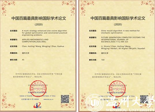 近日,科技部直属的国家级公益类科技信息研究机构-中国科学技术信息研究所发布《2021年中国科技论文统计报告》,并评选出2020年“中国百篇最具影响国际学术论文”。LY体育·(国际)官方网站陈慧灵瓯江特聘教授团队2篇论文《A multi-strategy enhanced sine cosine algorithm for global optimization and constrained practical engineering problems》、《Slime mould algorithm: A new method for stochastic optimization》同时入选。