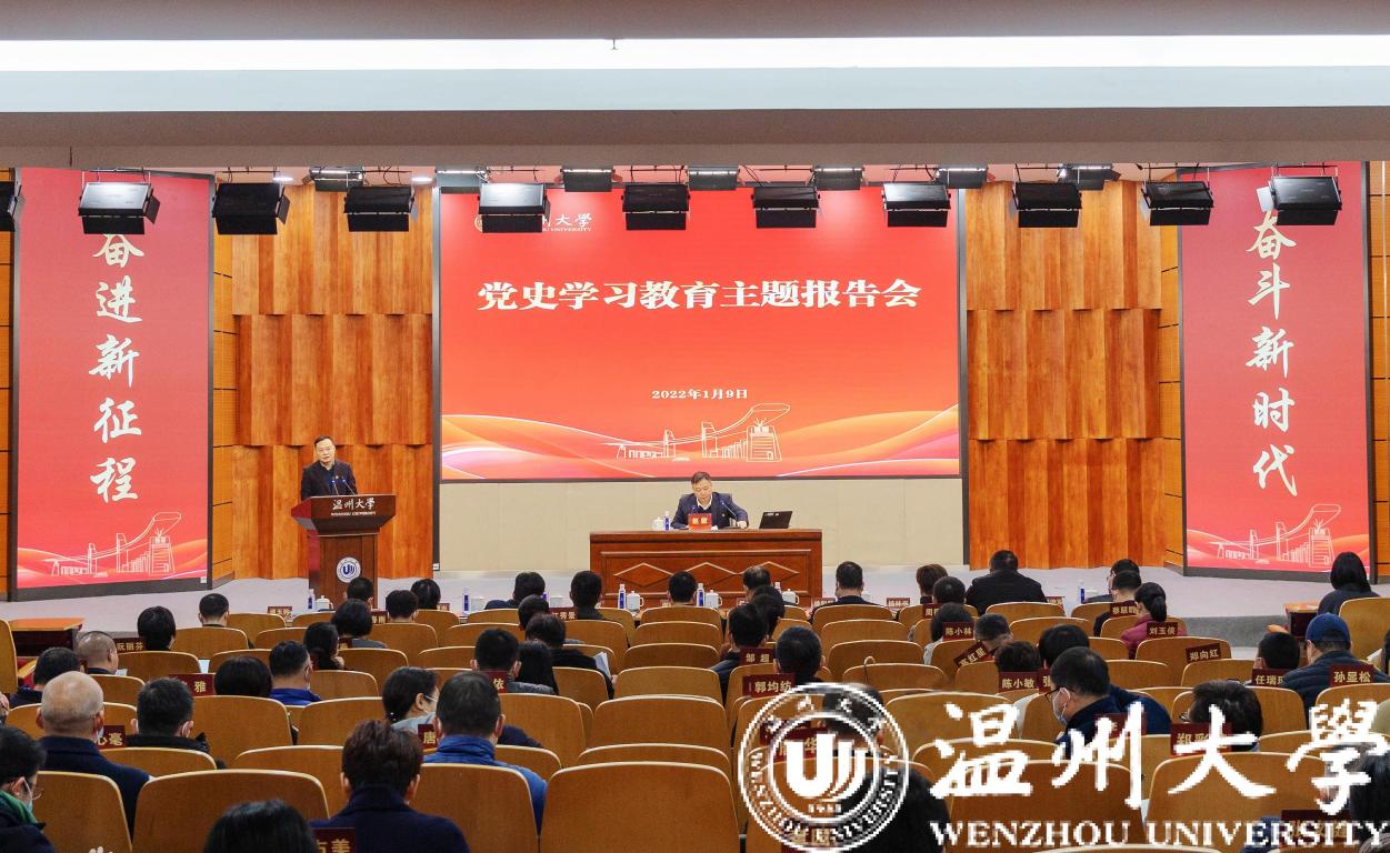 1月9日上午,我校召开党史学习教育主题报告会,校长赵敏以《解码精神谱系 激扬温大精神 建设特色鲜明的高水平教学研究型大学》为题作专题报告。全体校领导、中层干部、教工党支部书记和师生代表参加学习会。党委委员、宣传部部长潘玉驹主持会议。