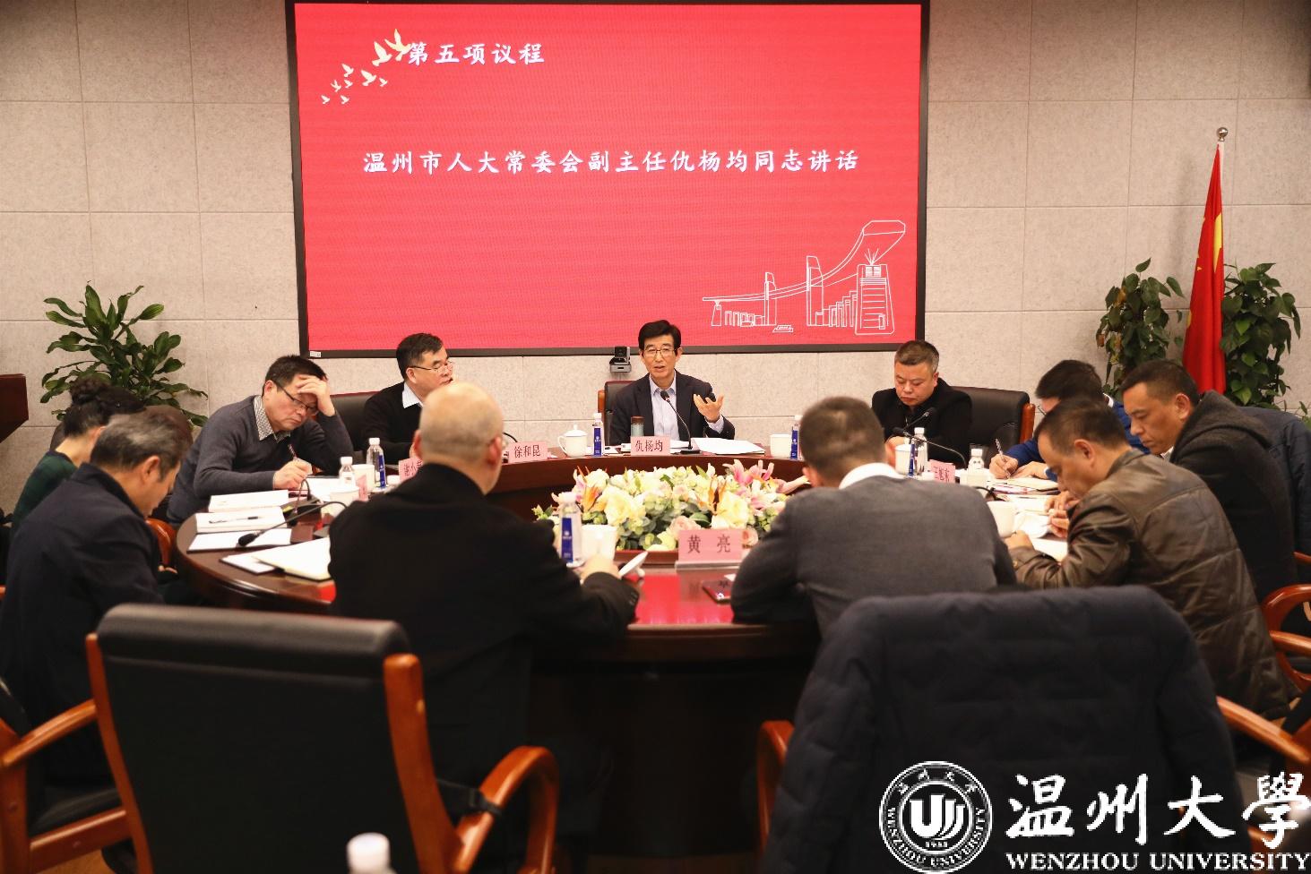 1月10日上午,温州市地方立法研究院工作会议在LY体育·(国际)官方网站召开。市人大常委会副主任仇杨均、副校长徐和昆出席会议。