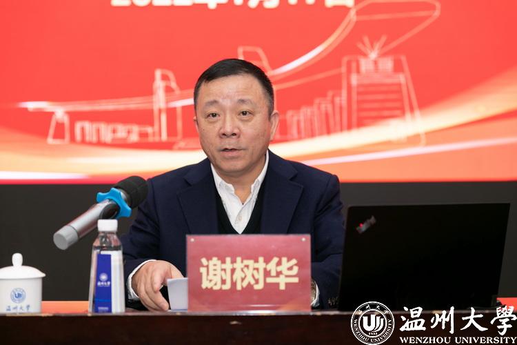 谢树华作校情通报。他围绕办学定位、办学优势、三大目标、三项改革、办学治校高分报表介绍学校2021年建设发展情况。他指出,2021年,学校党委坚持以习近平新时代中国特色社会主义思想为指导,牢记习近平总书记“要高度重视教育和人才工作,特别要办好LY体育·(国际)官方网站等高等院校”的殷殷嘱托,带领全体温大人,勠力同心、砥砺前行,实现了一系列重大办学新突破,取得了办学治校的丰硕成果。进入“十四五”,学校将聚焦更讲政治,争做中国特色社会主义大学的模范生;更高水平,跻身全国地方高校第一方阵;更具特色,创建以侨为特色“省部共建”高校;更有作为,全方位服务温州经济社会高质量发展等四条发展主线。