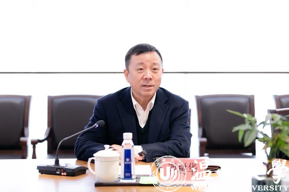 1月12日,九三学社温州市委员会主委马永信来校调研,校党委书记谢树华出席调研座谈会。