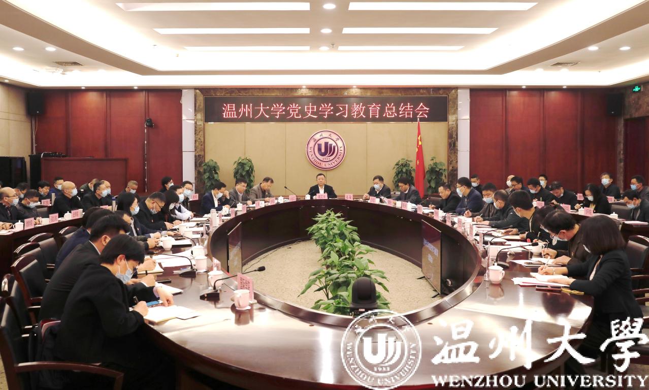 校党委书记、党史学习教育工作领导小组组长谢树华作党史学习教育总结,校党委副书记、党史学习教育工作领导小组副组长庄兴忠传达习近平总书记重要指示和党中央、教育部以及浙江省委、温州市委党史学习教育总结会议精神。校党委委员、宣传部部长潘玉驹主持会议。