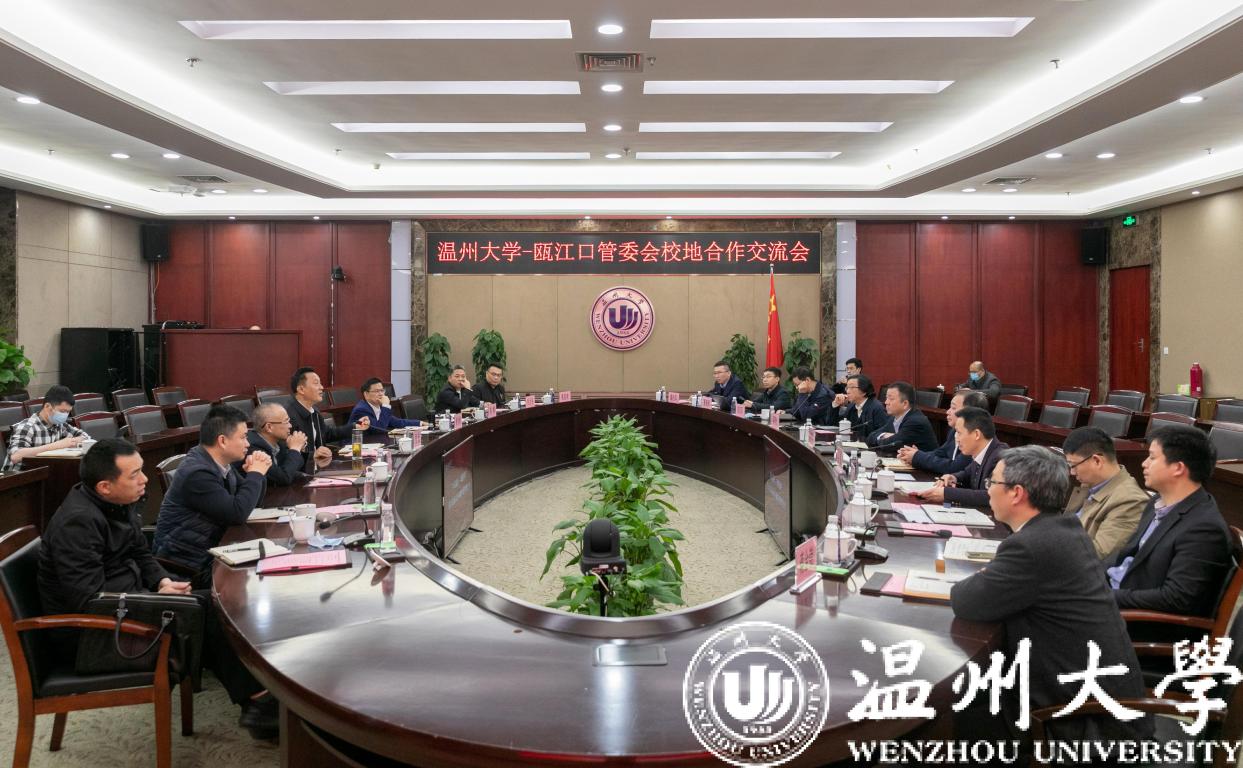 3月25日下午,温州瓯江口产业集聚区党工委书记、管委会主任梁超一行来校就校地合作事宜进行交流座谈。校党委书记谢树华,校长、党委副书记赵敏,校领导蔡曙光、王舜、郑信军出席座谈会。
