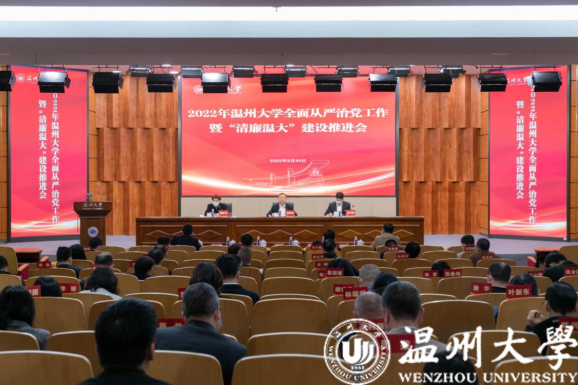 3月30日上午,我校召开2022年全面从严治党工作暨“清廉温大”建设推进会。全体校领导、校纪委委员、中层干部、学院纪委书记、党总支及直属党支部纪检委员、纪检监察室全体人员参加会议,校党委副书记庄兴忠主持。