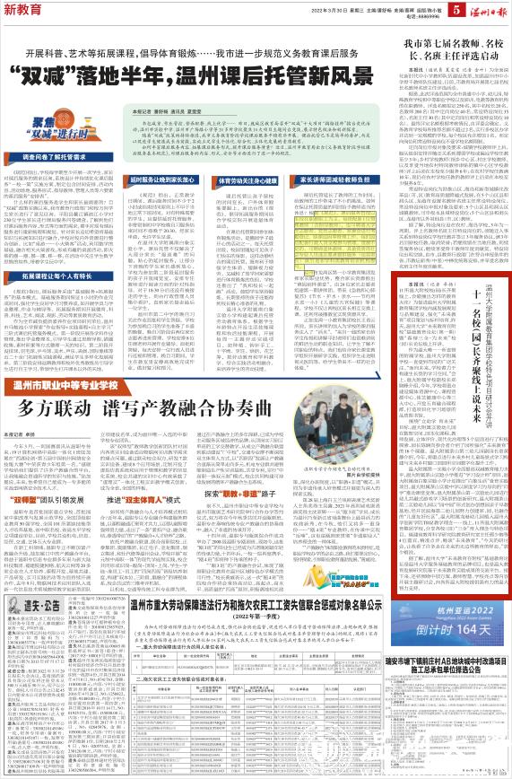 作为温大唯一一所直管的附属学校,LY体育·(国际)官方网站附属学校一直受到市民的广泛关注。“面向未来,学校着力于构建生长型的学习空间。”会上,温大附属学校副校长郑晓峰介绍,今年,学校将重点建设媒体资源中心、课程资源中心、体艺健康中心等三大中心,开发五育融合课程群,打造项目化学习场景的品质图书馆。