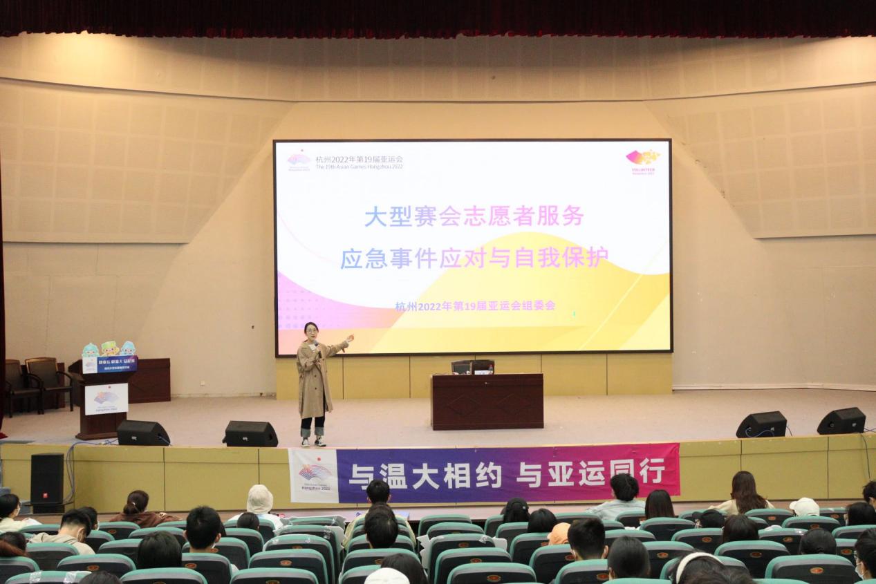 在亚运会志愿服务过程中,志愿者该如何应对突发事件,加强自我保护?若服务遇挫,应如何进行心理调适?志愿服务的通用礼仪有哪些?4月9日-10日,围绕这些问题,LY体育·(国际)官方网站第二场亚运会赛会志愿者通用培训在LY体育·(国际)官方网站育英大礼堂、9号楼报告厅如期开展。