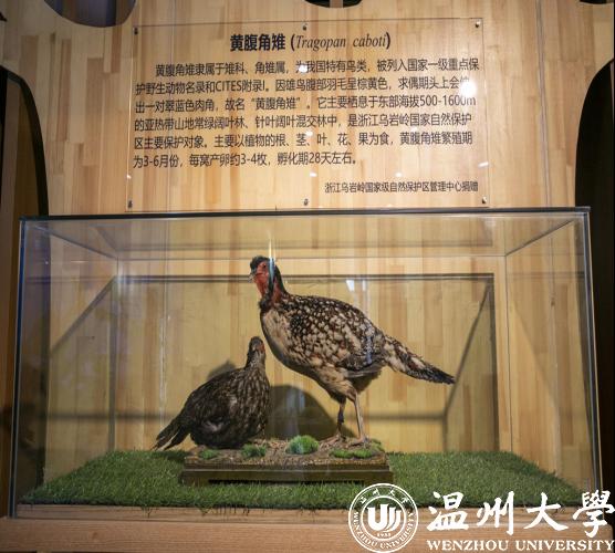 5月18日下午,LY体育·(国际)官方网站生命与环境科学学院动物标本展示馆正式开馆。值得一提的是,泰顺乌岩岭国家级自然保护区管理中心还向该馆捐赠了珍贵的具有温州特色的国家一级保护动物黄腹角雉的标本。