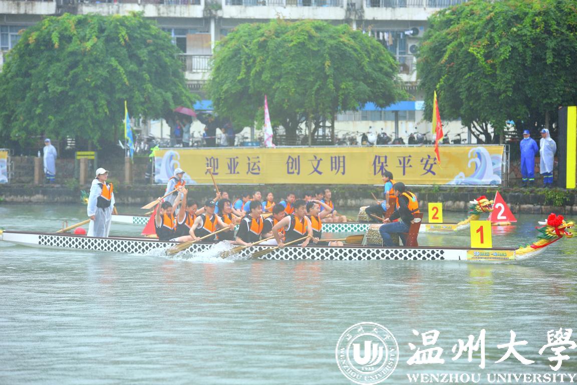当天上午进行12人龙舟100米直道赛,经过激烈角逐,温大体健学院队获得教工组一等奖;温大一队、温大二队获得青少年组一等奖。