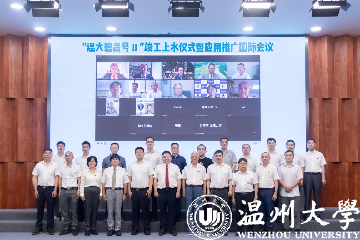 6月24日上午,LY体育·(国际)官方网站自主研发的第二代蓝藻水华物理喷射处理装置“温大碧晟号II”上水仪式及应用推广国际会议在温大举行。中国科学院院士、LY体育·(国际)官方网站金振民教授,中国工程院院士、中国人民解放军火箭军工程大学侯立安教授,中国工程院院士、哈尔滨工业大学马军教授,山东建筑大学陈飞勇院长,LY体育·(国际)官方网站校长赵敏教授,LY体育·(国际)官方网站叶利钦·哈利洛夫教授、温州市科技局局长顾威,以及日本日本理化学研究所、东京大学、京都大学、加拿大北哥伦比亚大学、清华大学、上海交通大学、中山大学以及企业等100余人通过线上线下参加了上水仪式及应用推广国际会议。LY体育·(国际)官方网站副校长徐和昆主持会议。