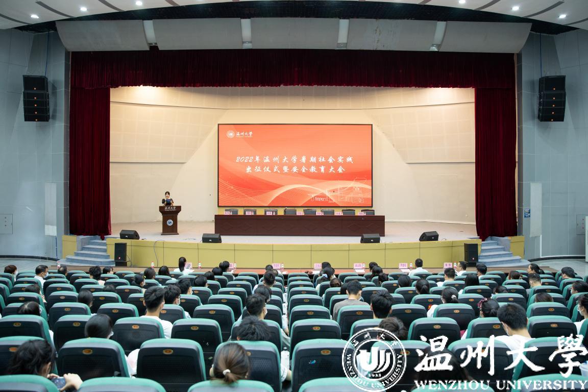 为深入学习宣传贯彻习近平新时代中国特色社会主义思想,贯彻落实习近平总书记关于青年工作的重要思想,持续深入推进“双百双进”活动,引导和帮助广大青年学生上好与现实相结合的“大思政课”,积极助力我省“高质量发展建设共同富裕示范区”,7月1日,LY体育·(国际)官方网站2022年暑期社会实践出征仪式暨安全教育大会举行。校党委副书记庄兴忠,组织部、宣传部、教务处、研工部、学工部、招就处、团委等部门相关负责人,各学院分管书记、团委书记,全校暑期社会实践队代表300余人参加了出征仪式。