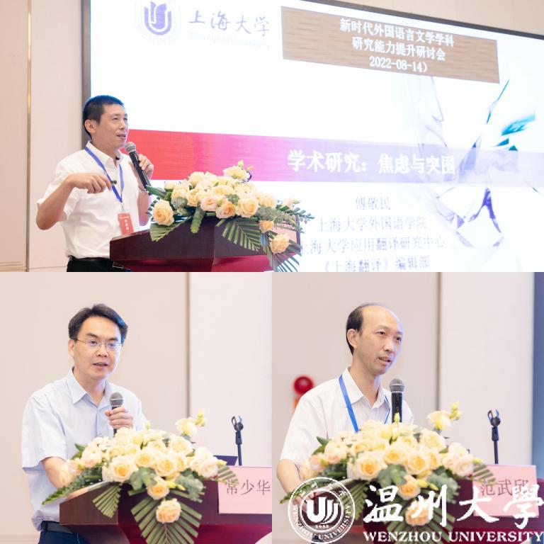 为精准对接新时代我国外国语言文学学科的发展要求,提高外国语言文学学术研究水平,加强学术研究成果的社会化及应用,8月13-14日,2022新时代外国语言文学学科学术研究能力提升研讨会在温州举行。本次研讨会由上海大学温州研究院、温州海育教育科技有限公司主办,由我校外国语学院承办,并得到《上海翻译》《中国外语》、上海外语教育出版社、南京大学出版社等我国外国语言文学学科领域十多家期刊编辑部和出版社的支持。