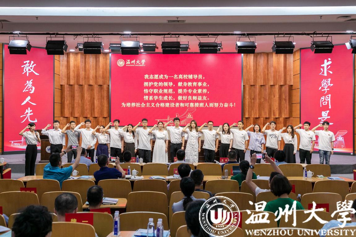 会上举行了2022年新入职辅导员宣誓仪式。庄兴忠为新入职辅导员赠送书籍,勉励大家始终加强学习、增强本领,争做新时代优秀辅导员。