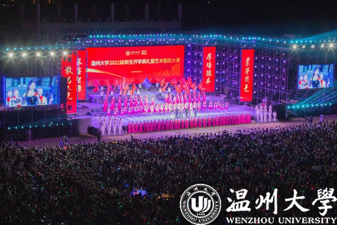 为了全面推进“大思政课”建设,构建“三全育人”工作格局和“五育并举”培养体系,进一步创新思政课育人载体,丰富思政课育人内涵,以艺术之形丰富教学内涵,以艺术之美浸润时代新人,本次开学典礼还特别举办了一场别开生面的艺术思政大课,聚焦《温大·梦起航》《瓯越·忆乡情》《华夏·铸辉煌》三个篇章,开启新生温大第一课。