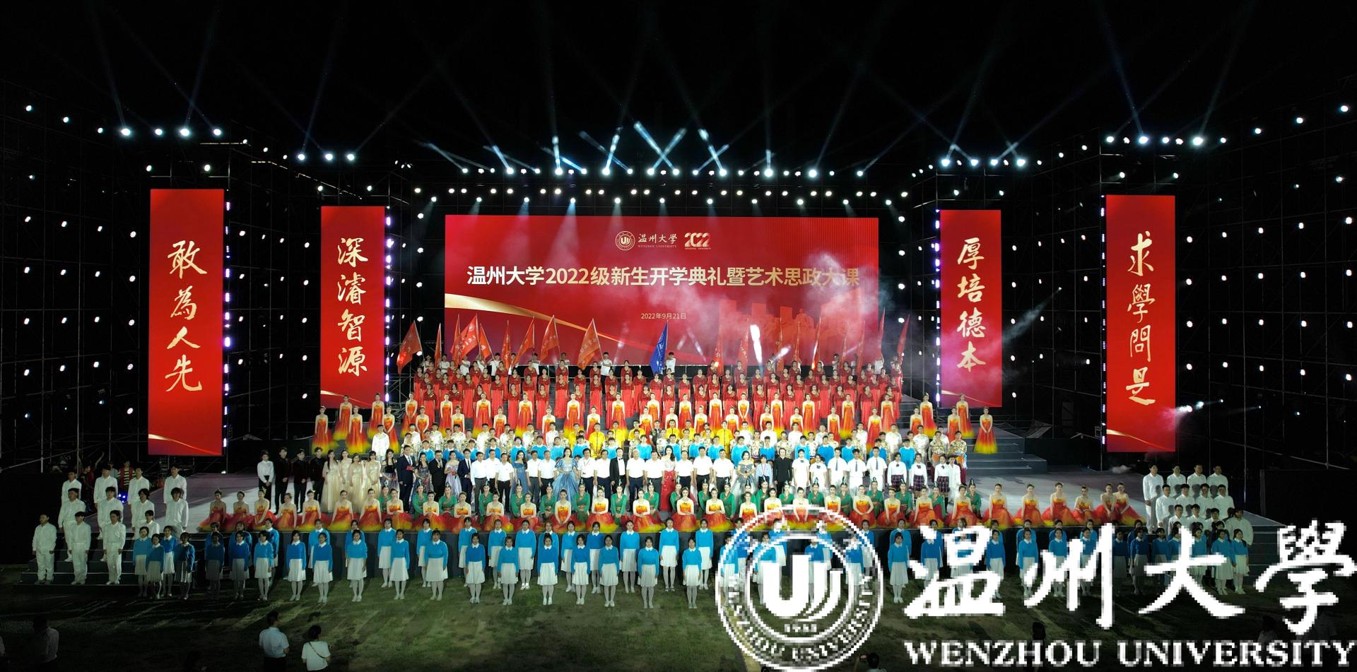 大罗山下,流光溢彩,瓯江之畔,青春激扬。9月21日晚,我校隆重举行2022级新生开学典礼暨艺术思政大课。全体校领导,各学院、部门负责人,新生班主任,全体辅导员,2022级新生,教师代表,校友代表,老生代表等参加典礼。校党委副书记庄兴忠主持。