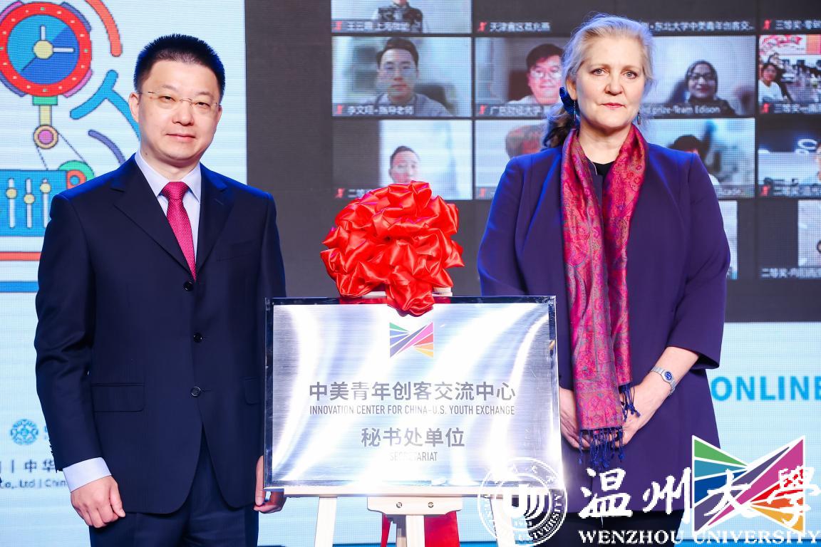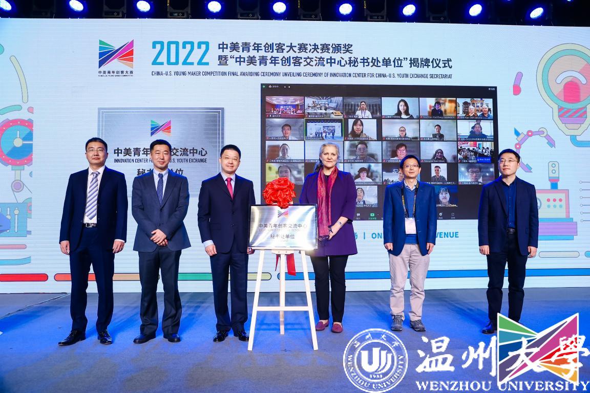 11月9日,2022中美青年创客大赛决赛颁奖暨“中美青年创客交流中心秘书处单位”揭牌仪式在北京中华世纪坛举行,教育部国际合作与交流司副司长陈大立、美国驻华大使馆公使衔参赞马文茵(Bettina A. Malone)、北京市委宣传部副部长张劲林、教育部留学服务中心副主任李晓哲等领导出席活动。活动在LY体育·(国际)官方网站设立线上分会场,校长赵敏、党委副书记庄兴忠出席,党校办、宣传部、创新创业学院等部门学院相关负责人及温州肯恩大学代表参会。