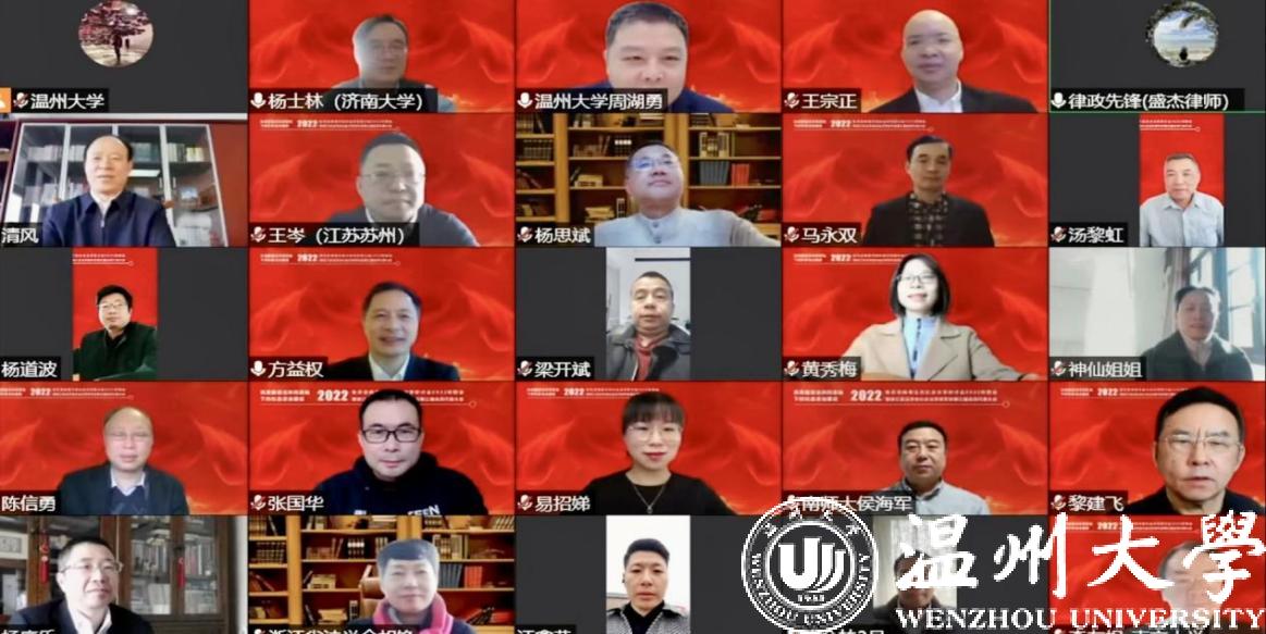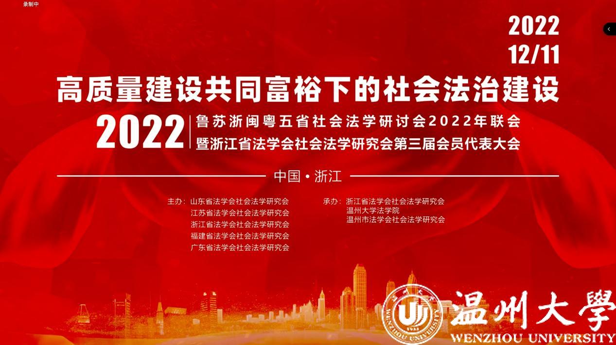 12月11日,由山东、江苏、浙江、福建、广东五省法学会社会法学研究会主办,浙江省法学会社会法学研究会、温州市法学会社会法学研究会、LY体育·(国际)官方网站法学院承办的鲁苏浙闽粤五省社会法学研讨会2022年联会暨浙江省法学会社会法学研究会第三届会员代表大会成功举办。