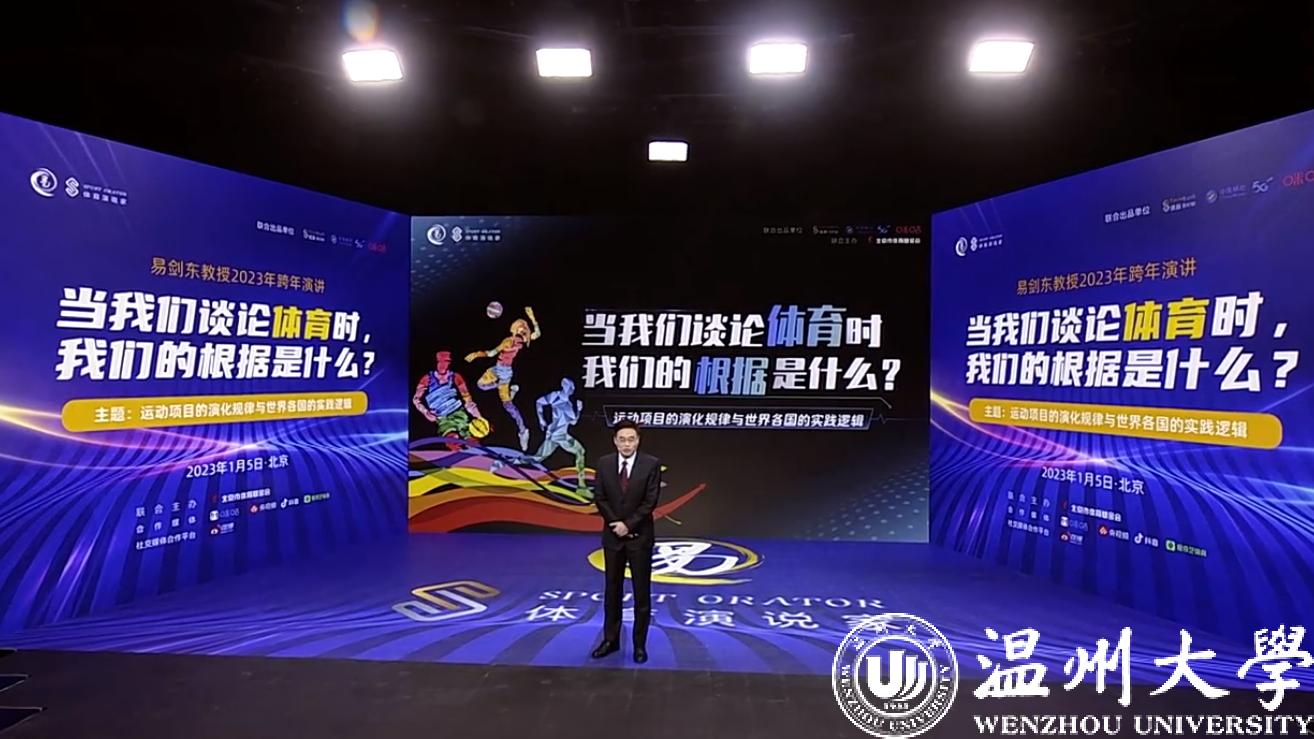 1月5日下午14时,我校易剑东教授第五届跨年演讲《当我们谈论体育时,我们的根据是什么?》在北京星光·视界中心三层演播厅重磅开讲。