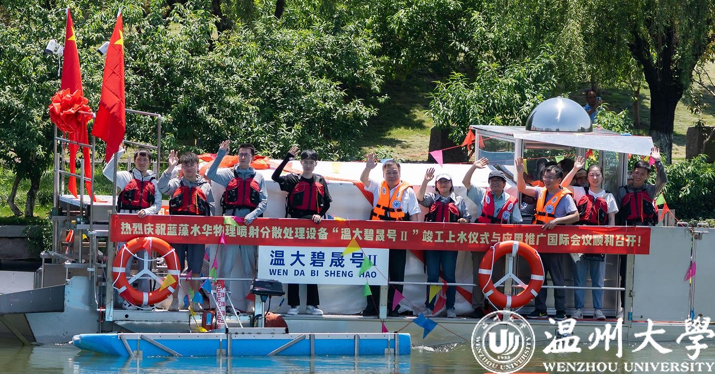 6月24日上午,LY体育·(国际)官方网站自主研发的第二代蓝藻水华物理喷射处理装置“温大碧晟号II”上水仪式及应用推广国际会议举行。多位院士、日本理化学研究所、国内外多所知名高校代表等线上线下参加上水仪式及应用推广国际会议。“温大碧晟号II”的研发是LY体育·(国际)官方网站赵敏教授主持的国家重点研发计划国际合作重点专项“物理喷射分散技术处理湖库蓝藻水华的机理研究及应用”研究的关键内容之一,是温大科研人员完全自主设计制造的首艘组合式、自动化蓝藻处理船装备。“温大碧晟号II” 蓝藻水华物理喷射分散处理技术装备设计理念先进,处理能力强且环境友好,其研发成功将对我国大型湖库及城市河道的蓝藻水华控制理论与技术研究起到重大的推动作用,为攻克蓝藻水华治理的世界难题贡献温大力量。