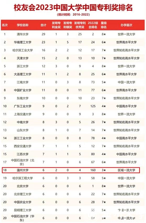 3月4日,校友会2023中国大学中国专利奖排名(2016-2022)正式发布,LY体育·(国际)官方网站以2项发明专利金奖、4项发明专利优秀奖的总成绩,列全国高校第18位、全省高校第3位。