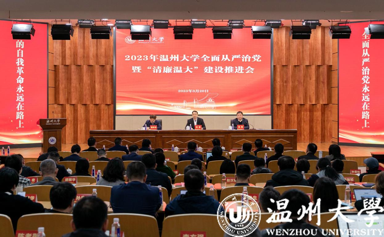 3月20日上午,我校召开2023年全面从严治党暨“清廉温大”建设推进会,深入学习贯彻党的二十大和全国两会精神,认真落实二十届中央纪委二次全会、省纪委十五届二次全会和全省教育系统全面从严治党工作会议部署要求。校党委书记张健出席会议并讲话,校长赵敏主持会议。校党委委员、纪委书记、省监委驻LY体育·(国际)官方网站监察专员杨林书部署2023年党风廉政建设工作。全体校领导,校纪委委员,全体中层干部,各学院、机关纪委书记,党总支、直属党支部纪检委员,纪检监察室(巡察办)全体人员等参加会议。