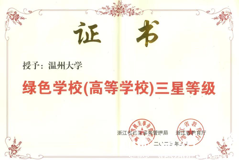 近日,浙江省机关事务管理局、浙江省教育厅联合公布第二批绿色学校(高等学校)名单,我校荣获“浙江省绿色学校(高等学校)三星等级”称号。