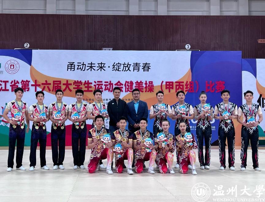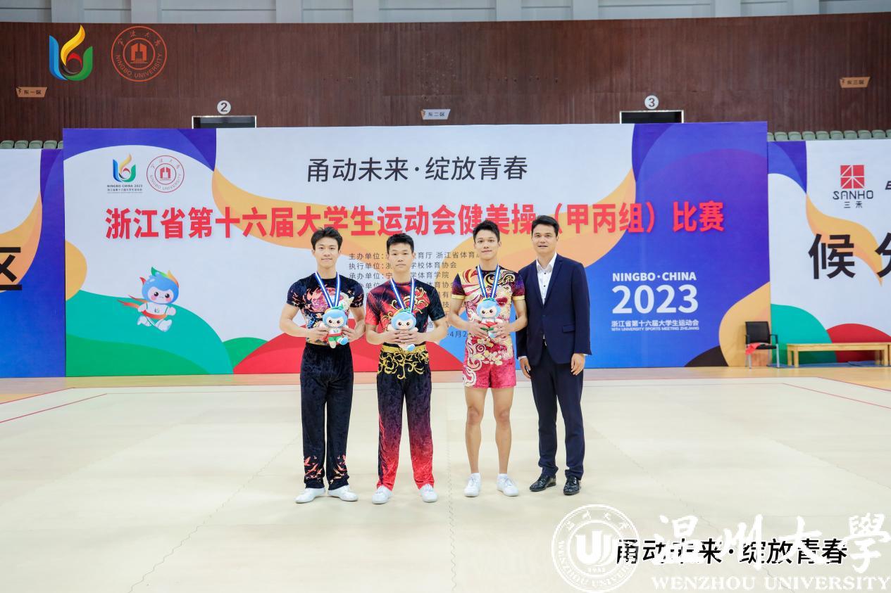 4月25-28日,浙江省第十六届大学生运动会健美操(甲丙组)比赛于宁波举行。我校队员获丙组男子单人操、三人操、五人自编有氧舞蹈第二名、甲组五人自编有氧踏板第四名;体育与健康学院方仕玮教练被评为优秀教练员,教师教育学院廖雨薇、吕欣桐、陈一帆和体育与健康学院陈昆甫同学被评为优秀运动员。