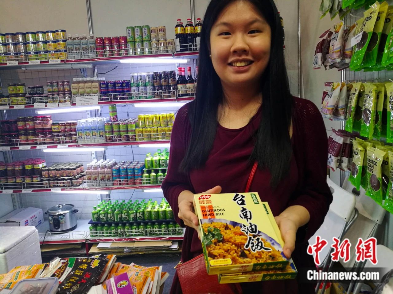 2017年6月,在菲律宾马尼拉食品与饮料博览会上,祖籍厦门的华裔女孩婉容,用一口流利的汉语推广台南油饭。关向东 摄