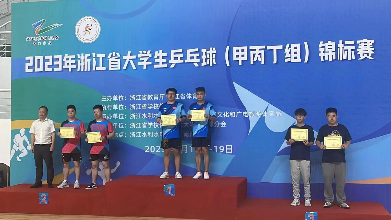5月16-19日,2023年浙江省大学生乒乓球(甲丙丁组)锦标赛在湖州举行,我校乒乓球队力克省内强队,取得建队以来最好成绩。机电工程学院本科生张柏宁、数理学院研究生包鸿杰荣获甲组男子双打冠军;体育与健康学院本科生陈骁、管福民、吴骁获丙组男子单、双打第三名;队伍获得丙组男子团体第四名;机电工程学院本科生张柏宁获“优秀运动员”荣誉称号。