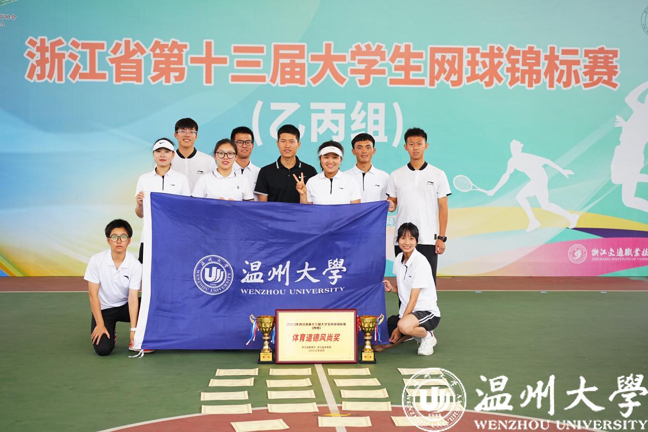 5月31日,浙江省第十三届大学生网球锦标赛(乙丙组)在浙江省交通职业技术学院落下帷幕。经过激烈角逐,我校网球队男双和男团喜获双冠军,女团获亚军,男单、女单选手获双季军等,队伍荣获“体育道德风尚奖”称号,为我校网球队自去年省大运会获两金两银后再获锦标赛突破。