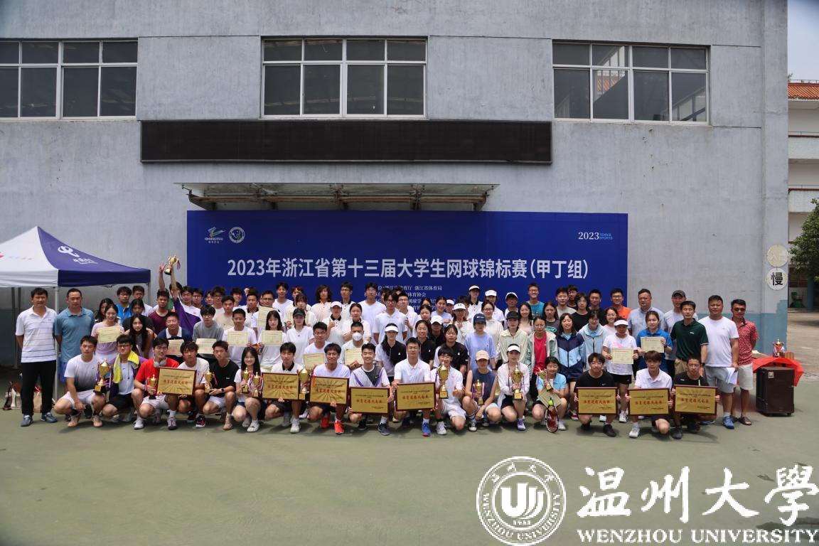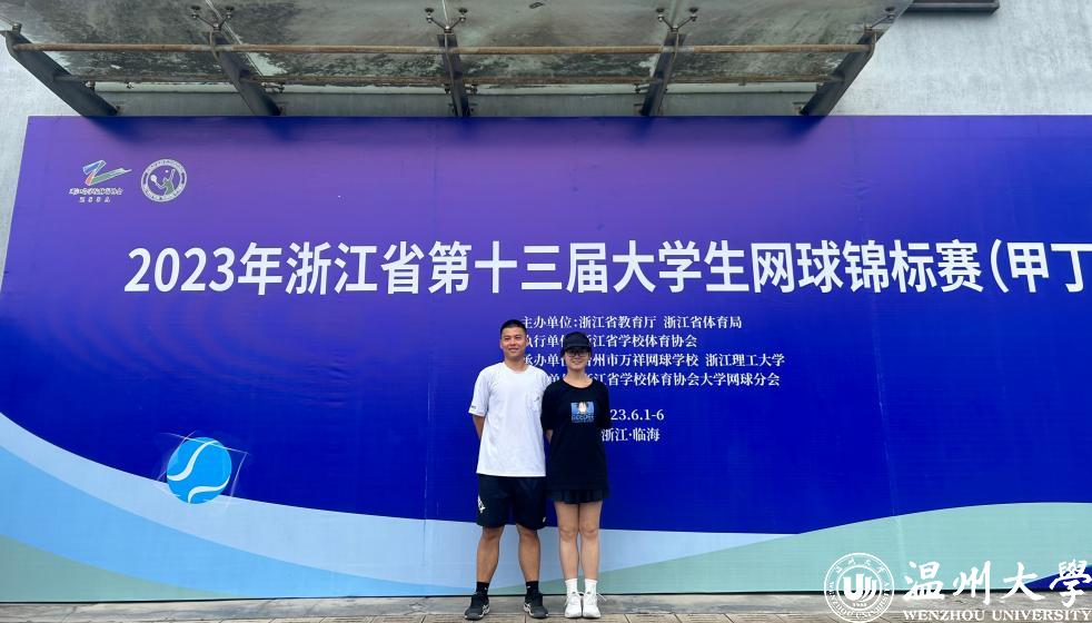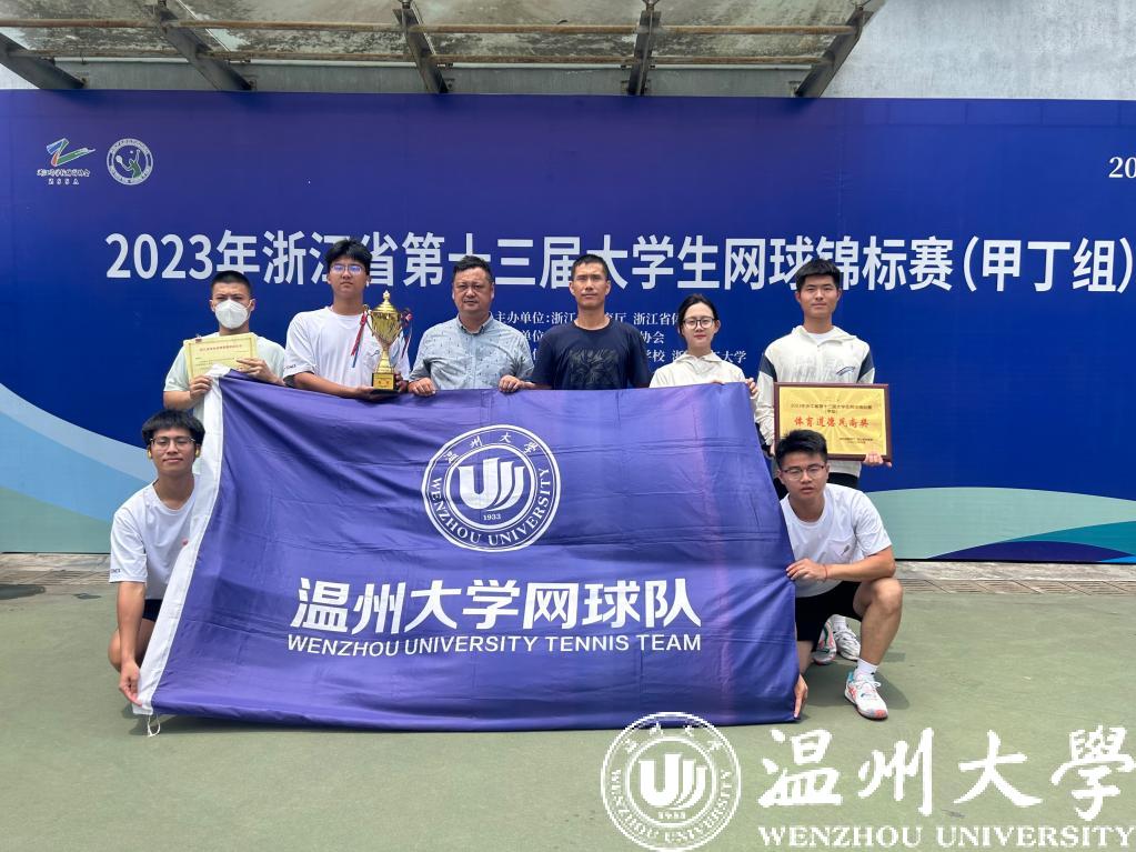 近日,由浙江省教育厅、浙江省体育局主办,浙江省学校体育协会执行,浙江省学校体育协会大学生网球分会协办的2023年浙江省第十三届大学生网球锦标赛(甲丁组)在台州万祥网球学校举行。来自全省46所高校的400多名运动员参加男女团体、男女单打、男女双打和混合双打等七个项目的角逐。我校队员奋勇拼搏、突破重围,刷新省赛历史战绩,取得混双第二、男团第三、男单第八的历史最好成绩。队伍获评“体育道德风尚奖”;教练潘树金获评“优秀教练员”;队员虞思媛、熊靖豪获评“优秀运动员”。
