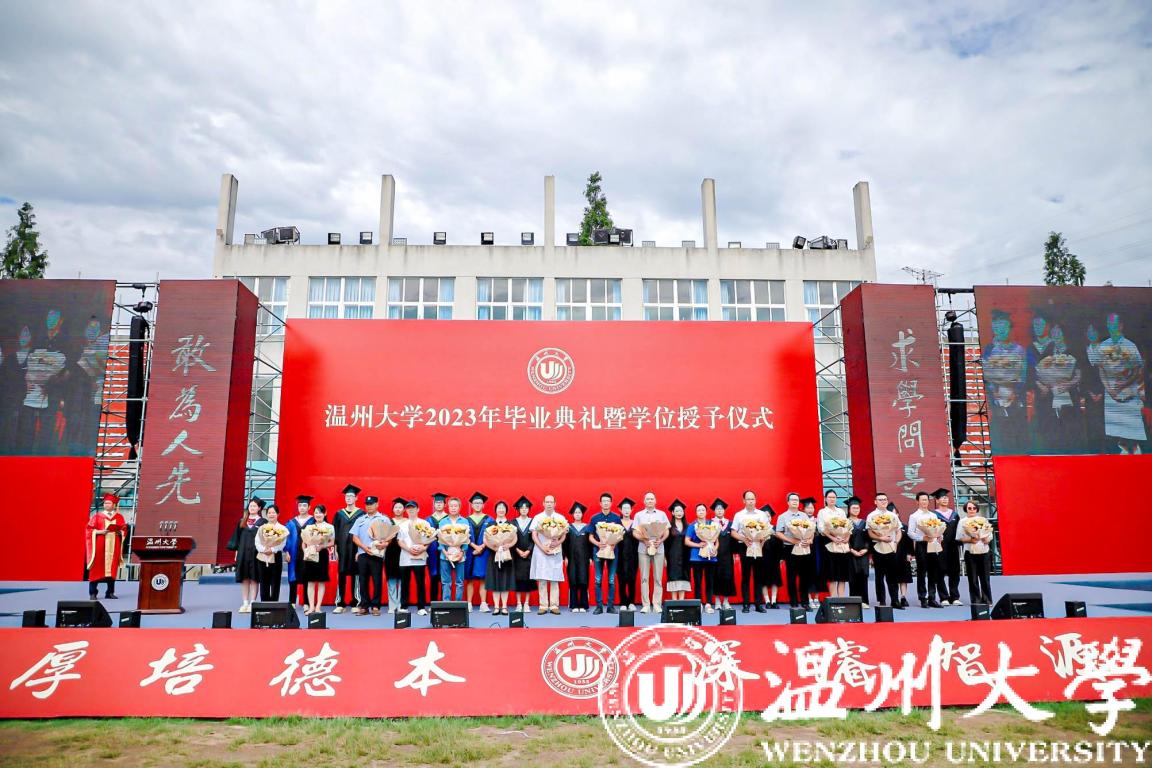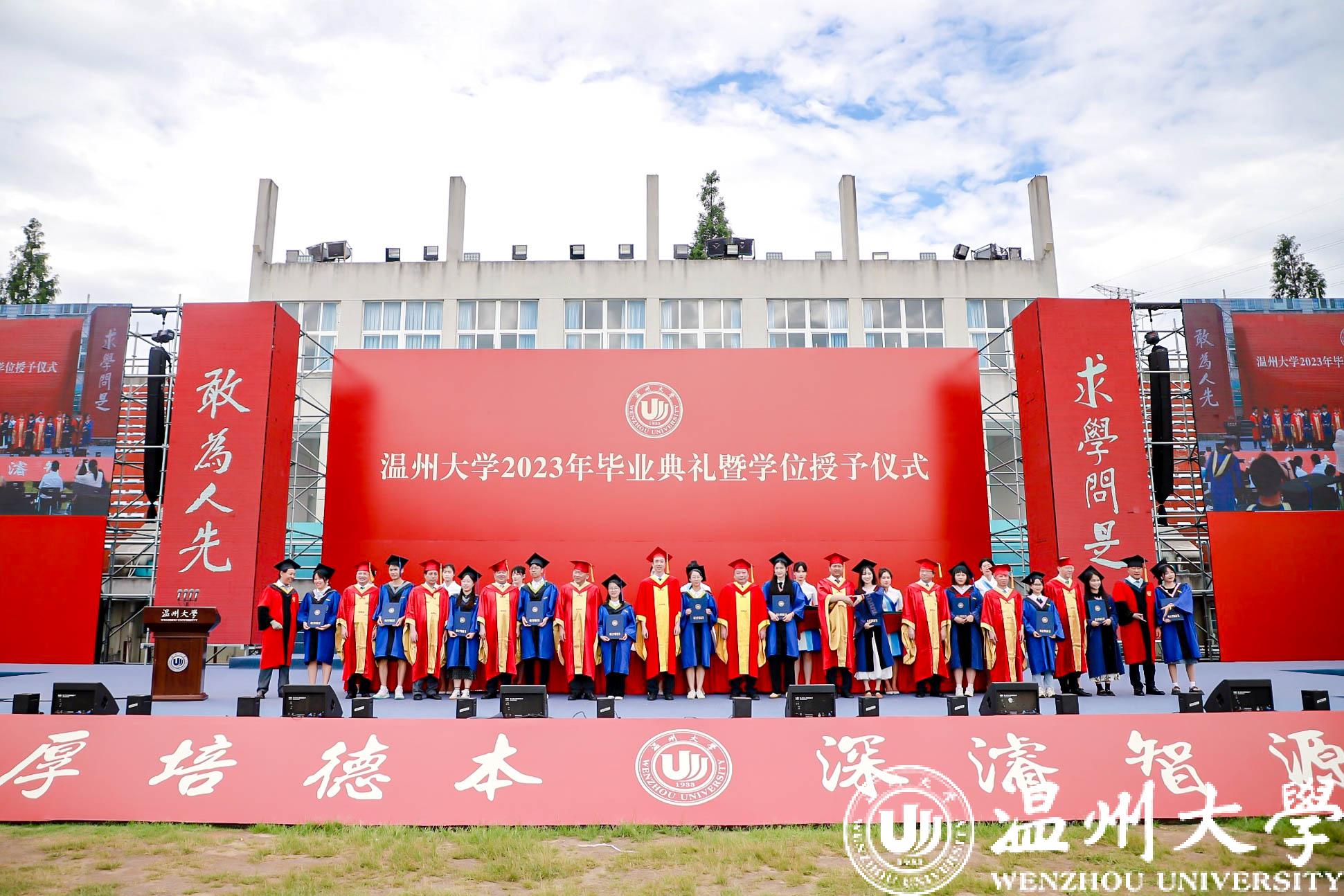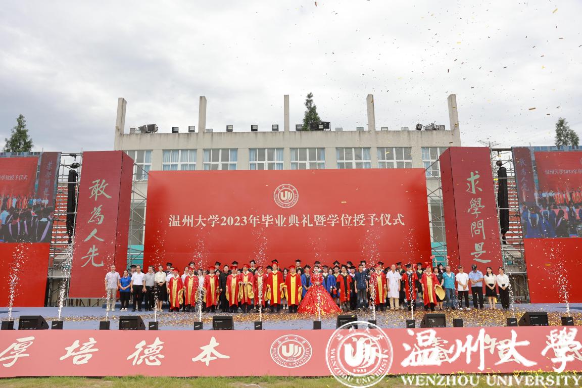 庄严而隆重的学位授予仪式举行。全体校领导与嘉宾为毕业生代表颁发学位证书并拨穗合影。帽穗的轻轻一拨,拨动的不仅是学子们在温大的点滴回忆,更是他们对人生新旅途的无限期许。