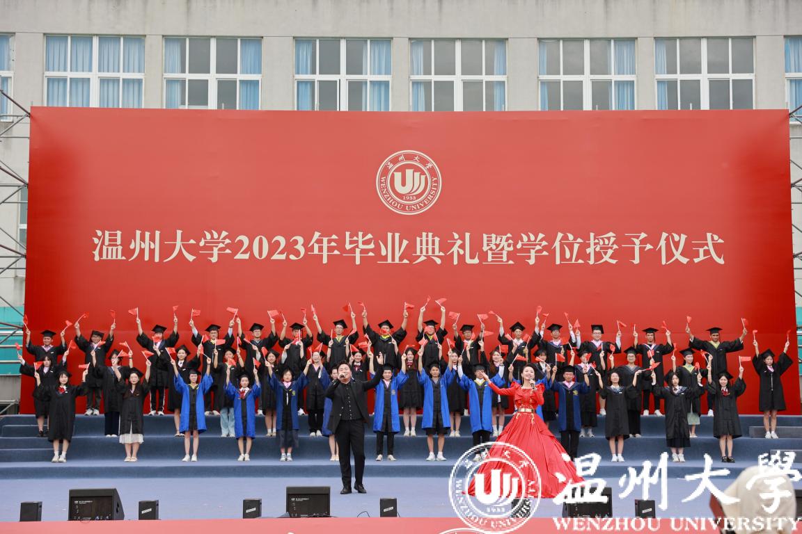 “大哉师道天下尊,承往哲兮启后人。厚培德本,深濬智源,学成致用教化淳……”全体师生齐唱校歌。在歌声中,毕业生正式告别他们在温大度过的青春岁月,迈向更加广阔的人生舞台。在新时代的浪潮中,全体温大毕业生必将继续光大温大精神,奔赴下一场山海,开启人生新的璀璨篇章。