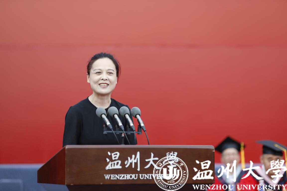 校长、党委副书记,俄罗斯工程院外籍院士赵敏致辞。“几年前,你们在‘大哉师道天下尊,承往哲兮启后人’的校歌中,开启了‘求学问是、敢为人先’的温大之旅。温大见证了你们‘破茧成蝶’,也收录着你们的‘独家记忆’。”回忆同学们的求学时光,赵敏校长满怀骄傲与感慨。“几年来,学校与大家共同发展进步,成功迈入浙江省重点建设高校,成功增列为博士学位授予单位,隆重举行办学90周年盛典,跨越发展的步伐铿锵有力、豪迈自信!”