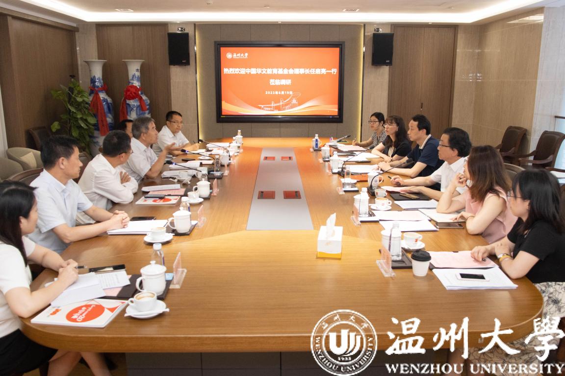6月19日下午,中国华文教育基金会理事长任启亮一行来校调研华文教育工作开展调研。中国华文教育基金会副理事长兼秘书长于晓、办公室行政主管李子丹随行调研,温州市政协副主席胡荣党、驻市委统战部纪检监察组副组长杜朔、温州市委统战部海外联络工作处处长蔡姬辉、副处长曾陈云陪同调研,校党委书记张健、副校长蔡曙光、华侨学院院长负责人,教师代表参加调研座谈会。