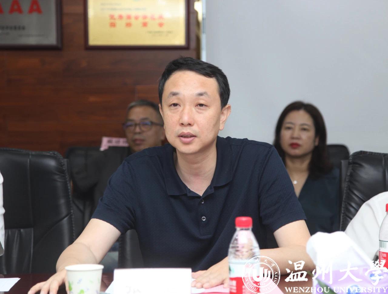 7月3日上午,张健一行到深圳市温州商会,双方就深化合作关系、拓展合作领域进行座谈交流。商会会长沙胜昔对张健一行的到来表示热烈欢迎,并从制度建设、党建引领、服务会员、搭建平台、招商引资、活动开展、文化兴会等方面详细介绍商会取得的发展成果。张健充分肯定了商会所取得的发展成绩,并对商会党建工作给予了非常高的评价。张健从师范教育、国际教育、人才培养、产教融合、学科赋能、成果转化、校友联动、招才引智、艺术合作、人文共融等10个方面分析了温大与商会的合作前景,提出温大与商会合作倡议,希望下一步能与商会进一步深度对接,将温大人才智力优势与商会企业家资源相结合,探索校会合作新模式 ,实现优势互补、相互赋能、共同发展。