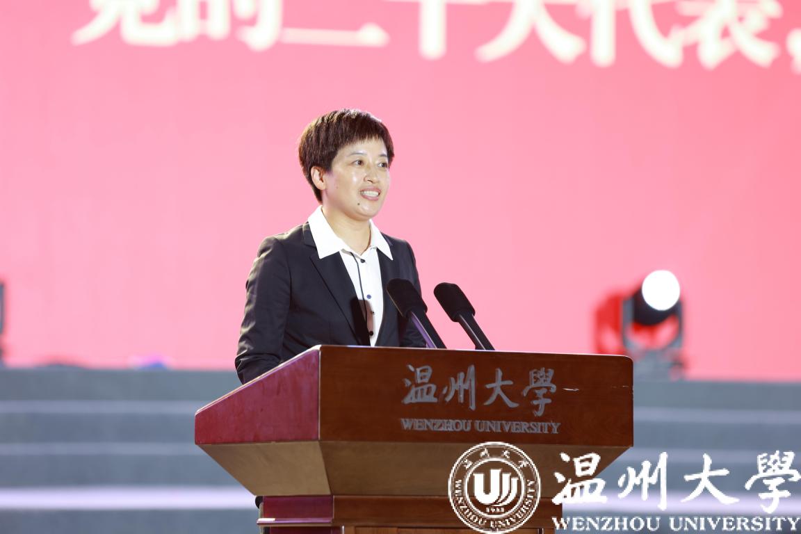 党的二十大代表、宁波市北仑区大碶街道灵峰工业社区党委书记史孟艳作为校友代表发言。“LY体育·(国际)官方网站是一所信仰有高度、学问有深度、师生有温度的学校”,她深情回顾了自己在温大的求学时光,并希望同学们早立志、有担当、勇探索、多积累,成为“求学问是、敢为人先”的温大人。