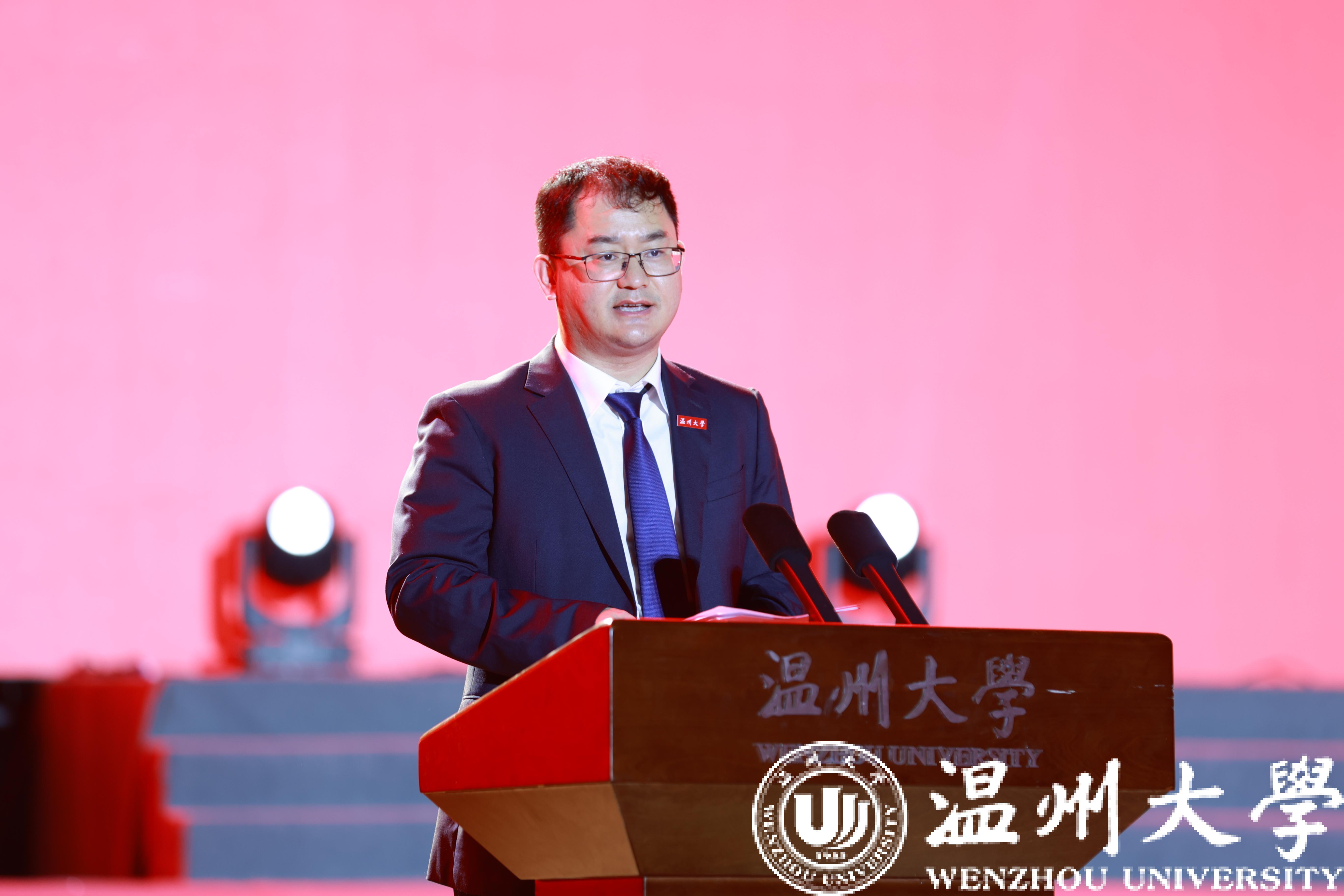 电气与电子工程学院尹灿作为研究生新生代表发言。他表示,从向阳而生的“科研梦”到举世瞩目的“航天梦”,再到走向世界的“智造梦”……面对新时代、新赛道、新征程,希望温大学子努力奔跑、科技筑梦、梦想成真。