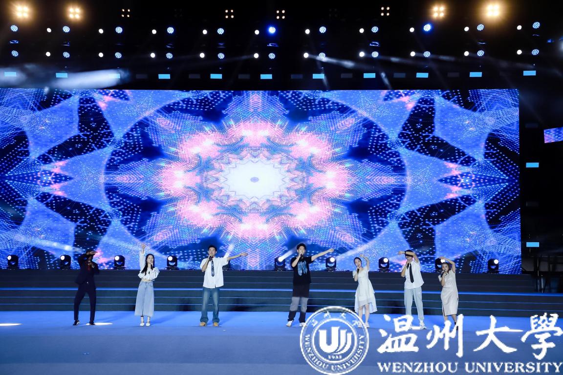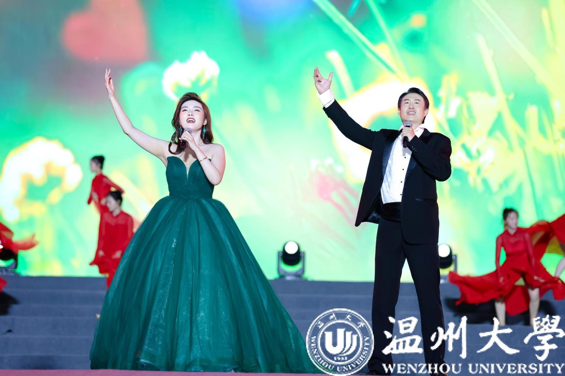 序曲《我的温大》点燃全场,同学们以温大人的身份,心心相连,齐聚一堂,在奋斗路上振翅翱翔。金秋九月,相聚浙江,相聚亚运。《@未来》歌舞飞扬,温大人共同迎接杭州第19届亚运会的到来,迎接更加美好的未来。强国之音,掷地有声,诗朗诵《强国有我 青春担当》充分展现了温大学子的责任与担当……舞蹈《涓流》诠释了“光大国族、造福人群”的温大人勇立潮头、奋楫扬帆,如同涓涓细流汇入祖国建设发展大潮贡献力量。吹打乐《龙腾虎跃》以生动的音乐形象展现了中华民族的美与力量。热爱祖国、家乡,面向世界、未来,独唱《有根有梦有远方》传递出逐梦路上的无限力量。《同爱同在》唱出了跨越万水千山的友谊,充分展示亚运精神与青春昂扬……