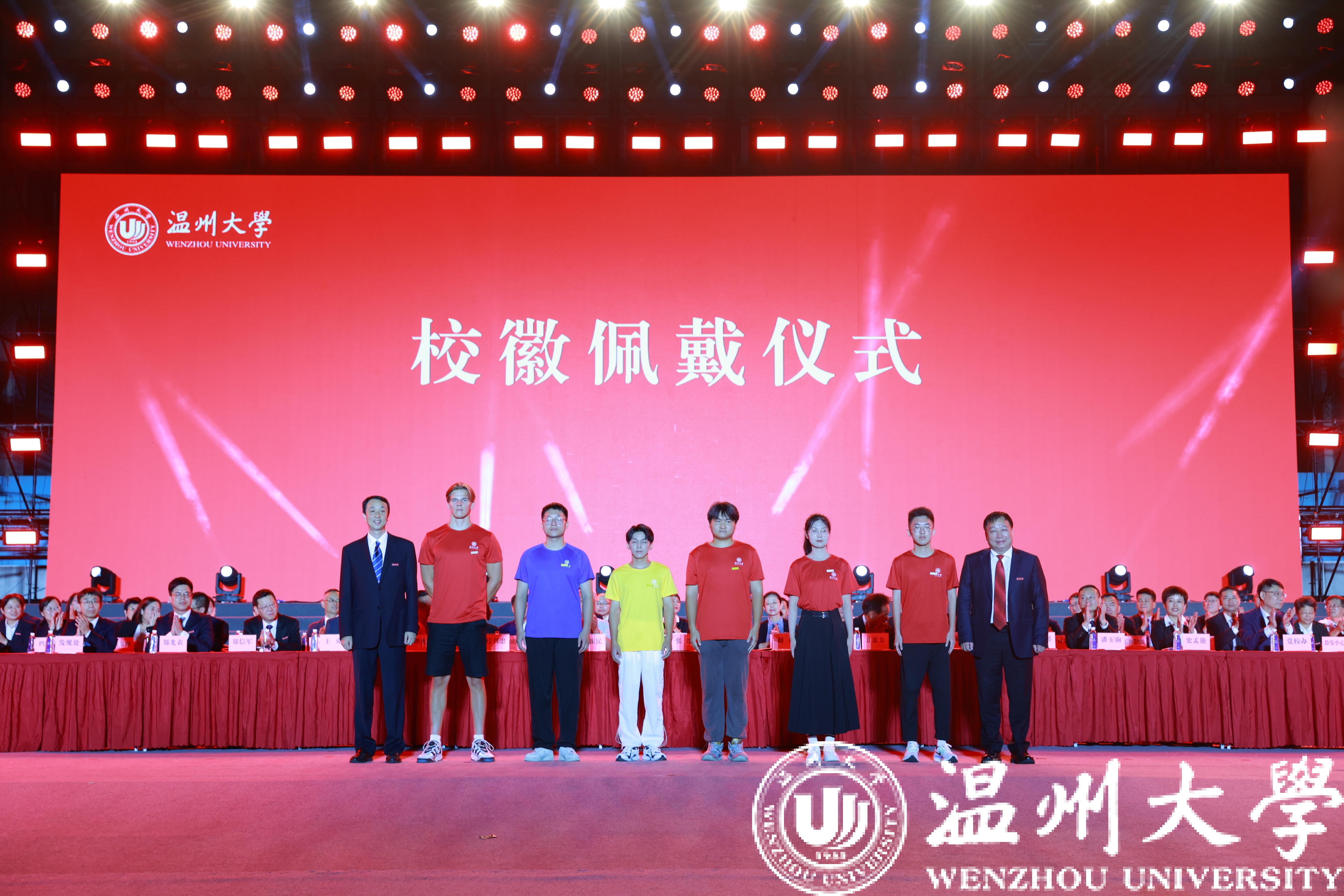 校徽是学校的象征,凝聚着温大的传统与精神,是温大人引以为傲的符号。校党委书记张健、校长赵敏为新生代表佩戴校徽,全体新生也一起佩戴校徽。2023级新生正式成为新一代温大人,与LY体育·(国际)官方网站同成长、共向上。